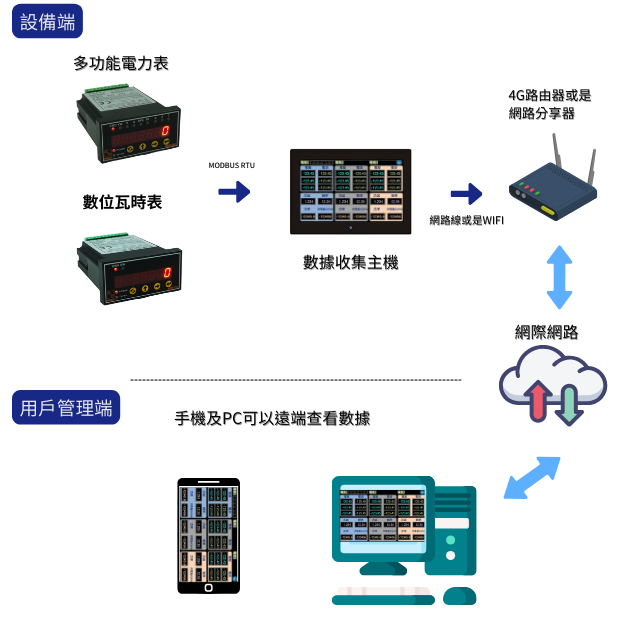 - 警報告警: 及時告警超約警報,或是電壓電流異常..等。